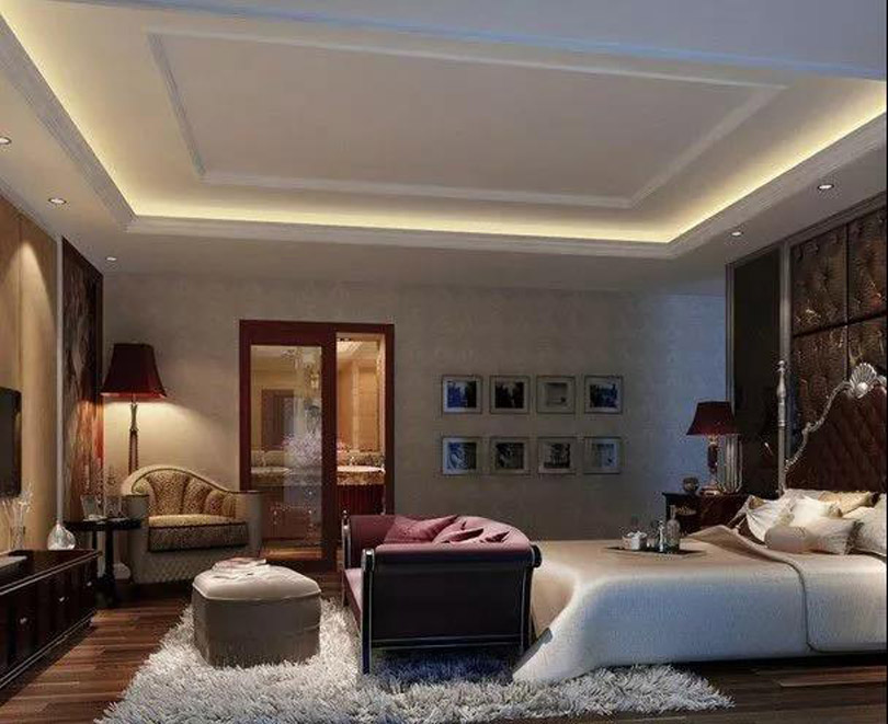 這類吊頂多數采用純白色的石膏線在天花板勾勒出造型,或者用自帶造型、花紋的成品石膏線來完成墻面到房頂的自然過渡,避免了視覺上的單一。