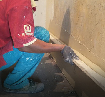 隱蔽工程驗(yàn)收合格后,泥工進(jìn)場(chǎng)補(bǔ)線槽局部修補(bǔ),衛(wèi)生間墻面防潮處理